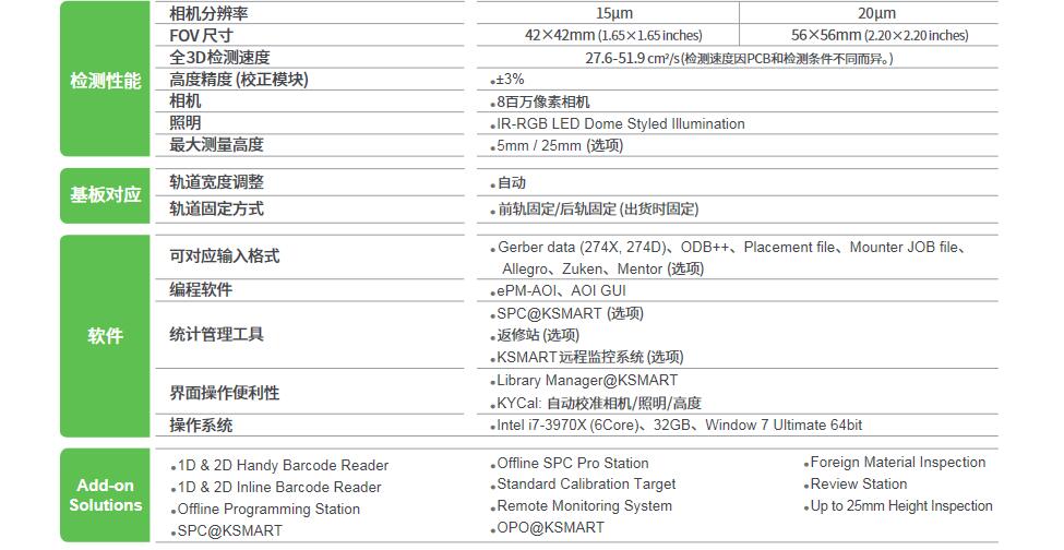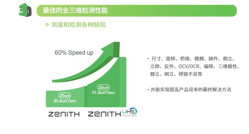 KOH YOUNG TECHNOLOGY Zenith UHS 高速全3D AOI,帶來 SMT 工藝管理的革命 行業(yè)領先的全三維測量檢測設備技術解決方案 - 業(yè)界唯一既符合 IPC-610 標準又具備直觀編程的檢測標準設置 - 通過基于測量的數(shù)據(jù)執(zhí)行缺陷診斷,并消除可能出現(xiàn)錯誤的原因 - 完美的三維焊點檢測 基于全三維數(shù)據(jù)的工藝優(yōu)化解決方案:實現(xiàn)工業(yè) 4.0 /智能工廠 適用于各種生產(chǎn)環(huán)境的最佳規(guī)格典范