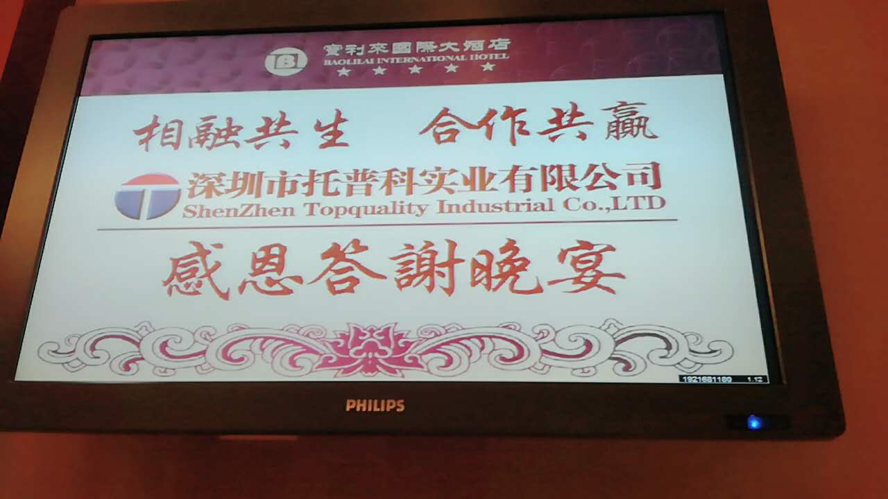 2017年6月2日,深圳市托普科實(shí)業(yè)有限公司感恩答謝晚宴在深圳福永寶利來國際大酒店拉開帷幕,“相融共生,合作共贏”是我們托普科這次感恩答謝晚宴的主題。答謝會(huì)除了表達(dá)對(duì)在場(chǎng)所有人員的感謝,更是打開大門,齊聚一堂,一起回顧了托普科十八年的歷程,感受品牌力量,分享品牌光芒,齊賞精彩節(jié)目表演,共襄盛舉。
