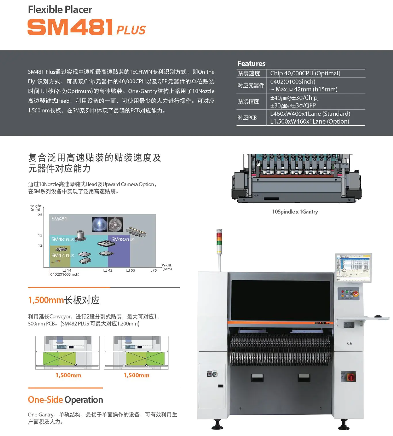 頭部飛行相機識別及固定高精度精密相機,單機可獨立完成所有產(chǎn)品貼裝。